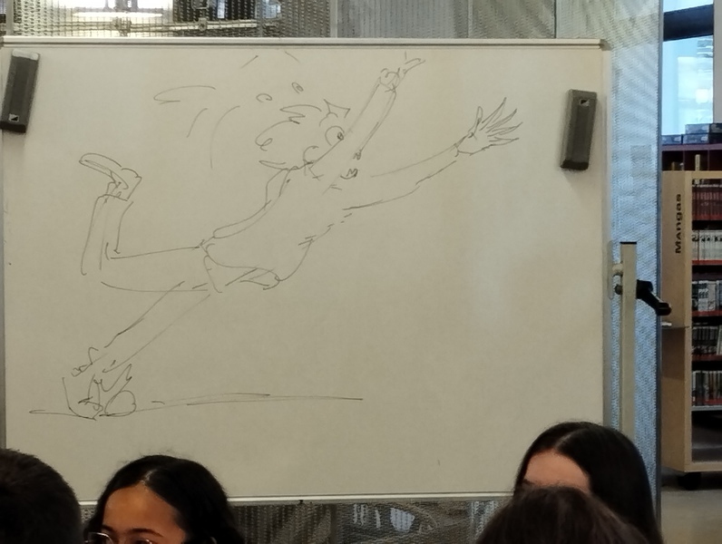 Journaliste, auteur et illustrateur, Nicolas a montré son carnet de dessins et expliqué le temps nécessaire pour écrire un livre : entre neuf mois à un an, à raison d’une à deux heures par jour. Il a aussi précisé qu’il est difficile de vivre seulement de l’écriture.