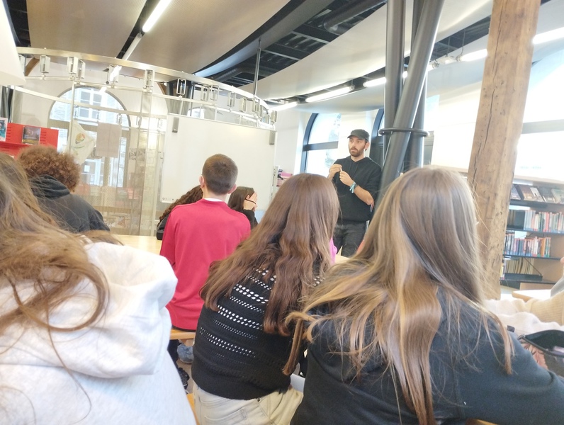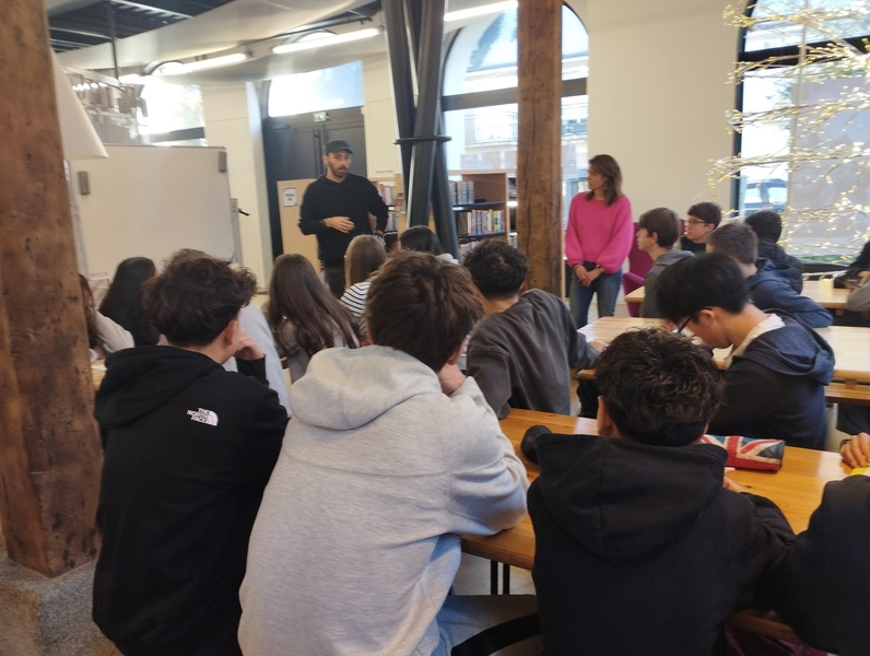 Dans le cadre du festival des Enchanteurs, les classes de 3e1 et de 4e3 ont rencontré, vendredi 21 novembre, Eruthoth, mangaka français à la médiathèque des Halles.